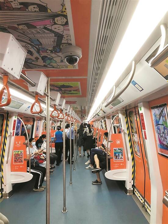 羊城晚报讯 记者沈婷婷摄影报道:5月25日,2021“童心·同心”深港澳儿童友好地铁专列从市民中心站发车,车内展示了深港澳儿童的近500幅绘画作品,专列将在深圳地铁2号线一直运行到7月5日。