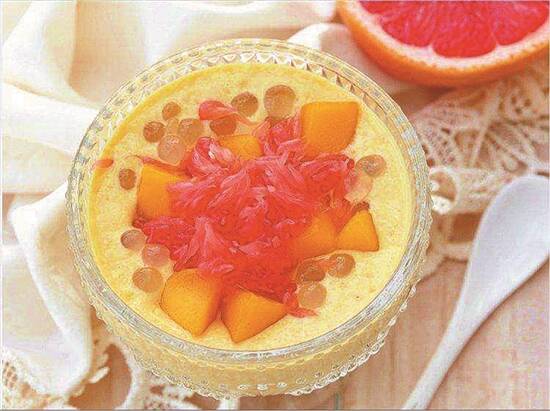 如今最常见的搭配还有芒果。芒果西米露化身的最佳代表那便是杨枝甘露,浓郁的热带香芒成汁成块,混搭起酸涩口感的柚粒,在奶油质地中蜕变丝滑顺口,成为暑夏南北食客心底最迫切的渴望。