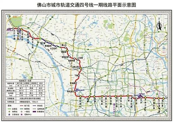 据悉,佛山地铁4号线一期工程呈西北至东南走向,起自三水区北江大道站,经西青大道、广海大道东、科技路,下穿东平水道,经季华路,再次下穿东平水道后,经三龙湾大道,止于南海区港口路站。