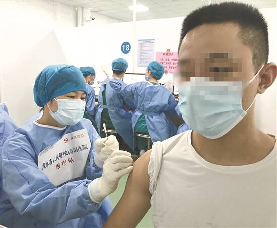 6月16日,新冠疫苗映月接种中心投入使用第六天,截至18时30分,当天接种疫苗达1.3万剂次。记者看到,在现场设置登记台40个,接种卡位40个,约150多名医护人员与志愿者、保洁人员都在忙碌之中,秩序井然。日接种能力提升到20000剂次。