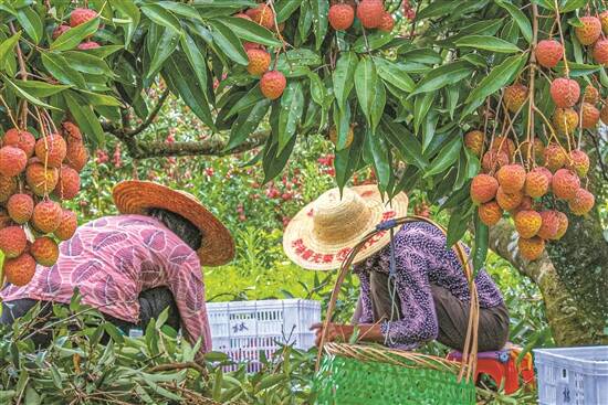 作为雷岭镇的支柱产业和特色产业,雷岭荔枝正逐渐由过往单一的产销模式转变为 “种荔枝-加工荔枝-游雷岭-摘荔枝-品荔枝-吃农家菜”全链条农业产业新模式,这也让当地村民的生活变得日益红火起来。