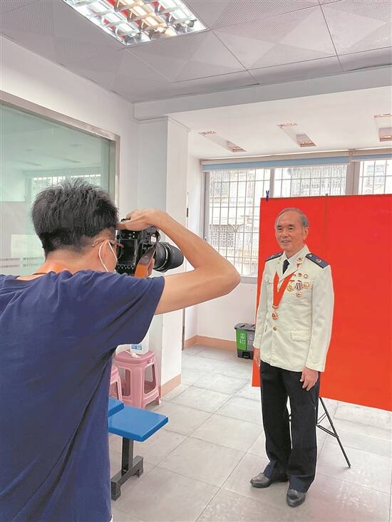 羊城晚报讯 记者张闻、通讯员梁倚玲摄影报道:为进一步增强老党员光荣感、使命感,引导党员深情回顾党的奋斗历程,牢记初心继承革命传统,近日,南海区军休所特意聘请专业摄影师为老党员们拍摄个人军装纪念照。