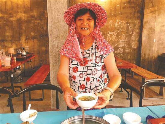 白蕉镇赖家村,闲来无事的赖东彩阿姨都会和村里其他妇女一起,张罗着煮客家咸茶。在她看来,端上一杯咸茶,品尝其中咸甘香风味,和街坊邻里围聚在一起分茶,“倾偈”谈心可是日常生活中不可缺少的乐事。
