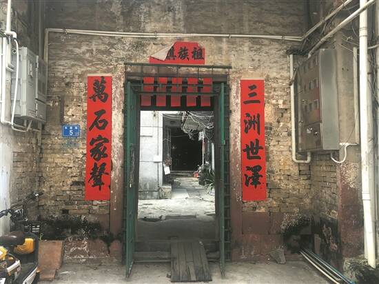 在惠州各处居住的廖氏族人,基本上都是从朱屋墩廖氏祖屋走出来的。位于桥东朱屋墩5号的廖氏祖屋,大门并不算大,但红砂岩的墙基、大理石的门槛和承梁,显示出这里曾经是一个大户人家。祖屋保存较好的建筑变成了出租屋,部分建筑坍塌严重,仅存的建筑依稀保留明清的特色。门前有一副对联:万石家声,三洲世德,横批是:祖族棋祥,这是廖氏人家的门联堂号。