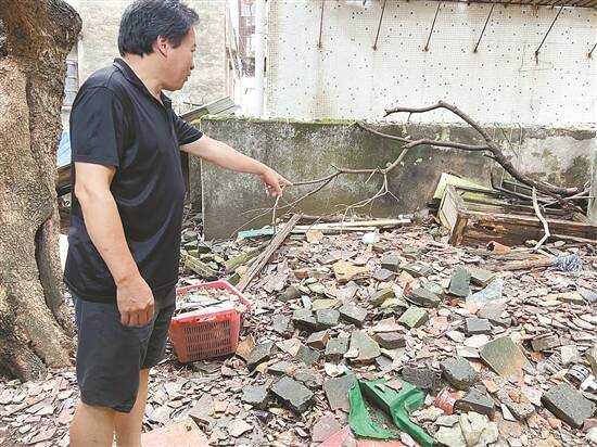 走进大门,可见房屋还保留着三进的格局,墙壁较厚,由夹层的青砖构成。在刘汉新的指引下,记者穿过大门右手边只容一人身的缝隙,透过满地的碎瓦碎砖和杂草,依稀可以看到一些残缺的石碑。穿过上厅,跨过三小段楼梯,便来到廖氏的花园。如今,花园里也只剩下一棵百年大树和满地废墟。刘汉新介绍,以前祖屋还留有露出地面1米多高的旗杆石,旗杆石上方有一个圆洞,现不知踪迹。