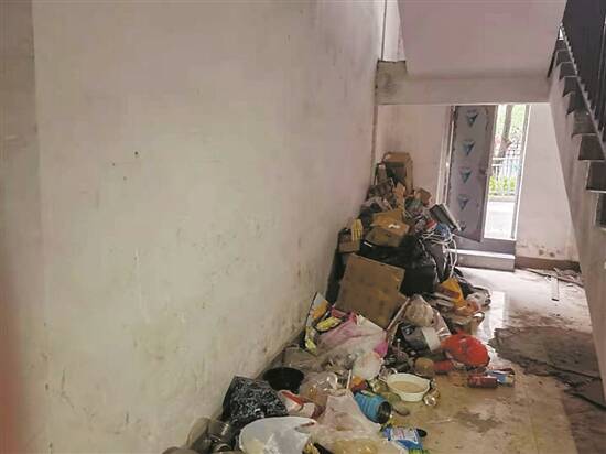 施工楼道堆积的生活垃圾