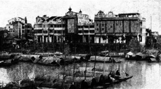 晚清东新浮桥。浮桥始建于北宋绍圣年间,苏轼参与兴建,陆续使用了近千年,水东街西连浮桥。图片源自《惠州近代历史图录》 制图/杜卉