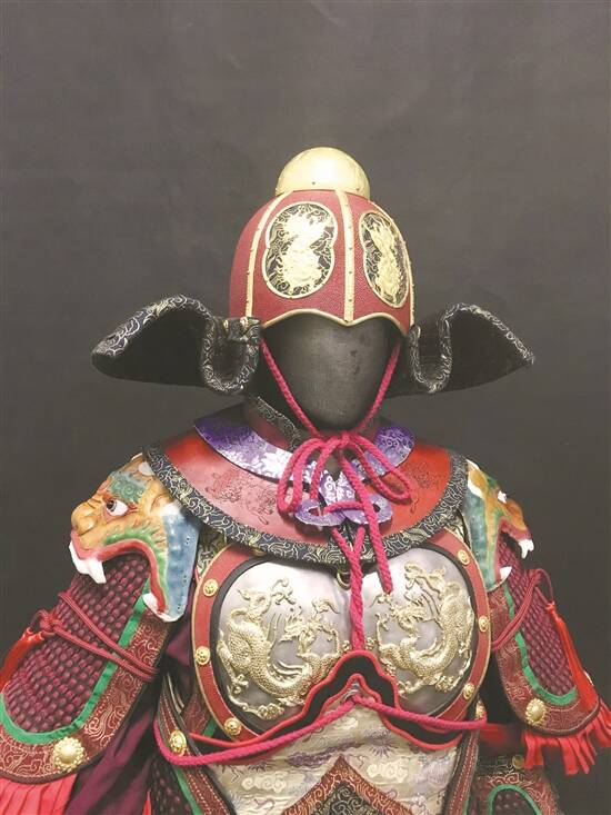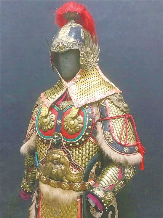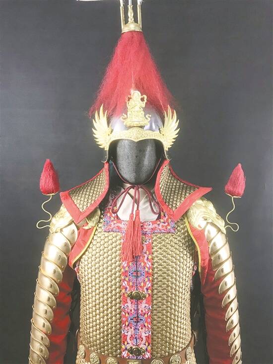 “眼前这套金光灿灿的甲胄名叫‘大汉将军仪仗甲’,是明朝早期高规格的甲胄,适合重大典礼使用。”何东明告诉羊城晚报记者,甲胄作为将士的防护性兵器,在冷兵器时代充当着极其重要的角色,类似于现代战争中的防弹服,可以较大程度地保护将士身体免遭敌方进攻性兵器的重创。