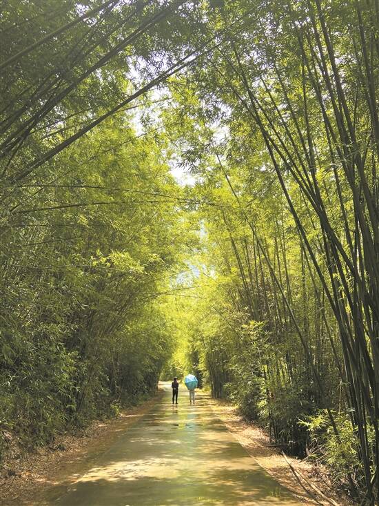 从芦洲镇政府出发,沿着蜿蜒曲折的乡道深入山林,大约半小时车程后即可抵达空气清新、风光秀美的墩子林场自然保护区。夏末秋初,漫山遍野的竹林密密麻麻铺开,连成一片浩瀚的竹海,大片绿色簇拥着,沿着幽静的乡道形成一条竹林风景绿道,惬意而浪漫。据介绍,芦洲镇墩子场村有望依托大片竹林风光,打造竹韵主题特色乡村旅游景区。