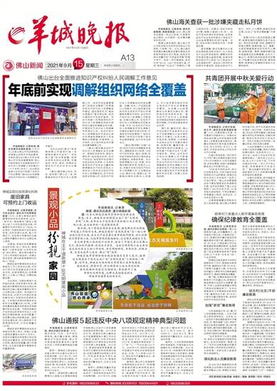 羊城晚报讯 记者张闻、通讯员佛司宣摄影报道:9月15日,记者从佛山市司法局获悉,该局牵头会同市市场监管局、市版权局出台《佛山市司法局 佛山市市场监督管理局 佛山市版权局关于全面推进知识产权纠纷人民调解工作的意见》(以下简称《意见》),这也是全省首个由司法行政部门与知识产权主管部门联合出台全面推进知识产权纠纷人民调解的工作意见。