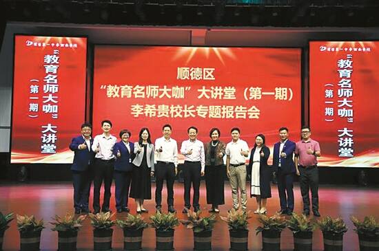 羊城晚报讯 记者曹月、通讯员顺教宣摄影报道:10月18日,记者从顺德区教育局获悉,为进一步培养打造一支师德高尚、视野开阔、专业精湛的教育家型校长队伍,更好引领和推动顺德区教育高质量发展,日前,顺德区举办了第一期“教育名师大咖”大讲堂系列活动。据悉,活动邀请了当代中国著名教育家、中国教育学会副会长、教育部基础教育教学指导委员会副主任委员李希贵,为顺德广大中小学校校长以及教育管理工作者传经送宝。