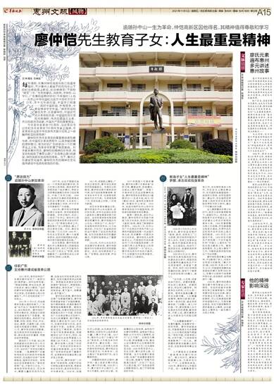 仲恺中学廖仲恺雕像 惠仲宣供图