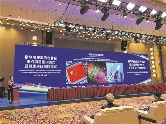 随后,横琴粤澳深度合作区执委会在长隆横琴湾酒店国际会展中心举行重点项目集中签约暨民生项目揭牌仪式,12个重点项目集中签约、4个民生机构揭牌启用,进一步推动发展促进澳门经济适度多元的新产业,建设便利澳门居民生活就业的新家园。