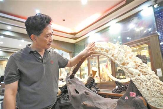 谈起牙雕产业的发展和雕刻工艺的传承,何爱群想法很多。他表示,牙雕作为中国五千年的文化传承,目前协会也在布局,后期会与文化旅游产业发展相融合,在斗门打造猛犸牙雕艺术展览中心,正在落实把国家牙雕基地落户到斗门,将牙雕产业打造成斗门文创新名片。