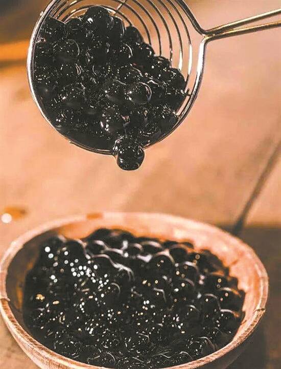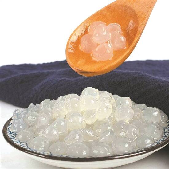 最常见的是珍珠,也就是珍珠奶茶里最吸引人的总是那一颗颗Q弹的小球球。对于珍珠爱好者来说,无珍珠不奶茶。珍珠奶茶使用的“珍珠”,是由木薯粉制作而成的粉圆,也有用玉米粉等淀粉类的。珍珠粉圆是用淀粉做的,淀粉中的直链淀粉被淀粉酶水解为麦芽糖,所以吃珍珠的时候会越嚼越甜。而淀粉中的支链淀粉与热水作用会膨胀成糊状,并且有黏性和弹性,珍珠口感很Q、很黏的秘密也就在这里。网传珍珠奶茶里的珍珠是塑料做的,无论是从科学性和操作性都属于茶余饭后的无稽之谈,可以一笑置之。