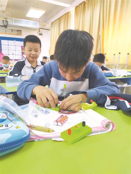 从去年开始,在莞城某小学读四年级的小梓,每天放学后还会参加校内430课堂。今年上学期,她选择的430课程依然是科学实验课,她觉得科学实验很好玩。小梓的妈妈透露,学校周一到周五的430课堂,每天都有科学实验班,“我女儿已经连续两个学期选了科学实验课,这个课涉及的知识点很多,有物理、化学、天文等知识,能满足孩子的好奇心”。据悉,如今东莞学生在家开展线上学习,小学学校每周同样安排了科学课,指导学生动手动脑,做各种科学实验。