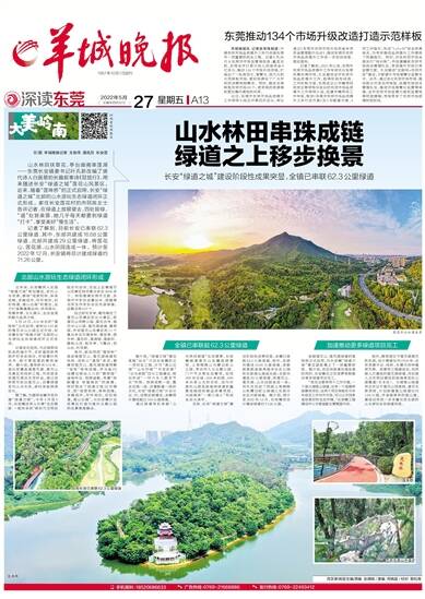 山水林田扶草花,亭台廊阁串莲湖——东莞长安镇委书记叶孔新改编了唐代诗人白居易的长篇叙事诗《琵琶行》,用来描述长安“绿道之城”莲花山风景区。近来,随着“莲珠桥”的正式启用,长安“绿道之城”北部的山水游玩生态绿道闭环正式形成。家住长安莲花村的市民陈女士告诉记者,在绿道上放眼望去,四处皆绿,“道”处皆美景,她几乎每天都要到绿道“打卡”,享受美好“慢生活”。
