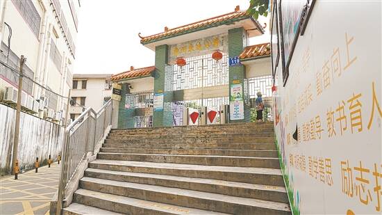 东坡小学位于桥东学背街119号,四周被古朴的居民楼所包围。这里山势较高,周边都是羊肠小道,蜿蜒曲折,沿着“高山下巷”步行百余米,才到达东坡小学。