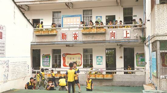 远远望去,东坡小学仿古门楼高高耸立,檐角翘起,颇有历史感。校园内,设施设备稍显陈旧,使用痕迹明显。据介绍,东坡小学占地约6000平方米,共有11个教学班,学生531人。与周边其他学校相比,规模较小。校内仅有的一栋教学楼,建于上世纪80年代,属砖混结构,经鉴定已不适合继续使用。