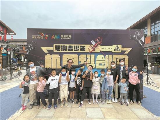 洪于德与参加“机甲科创周”活动的琴澳青少年合影