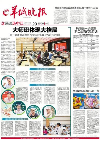 作曲与作曲技术理论教授、硕士研究生导师杨晓认为,大师班连续举办五届,在全国产生了广泛影响,“大师班也有成果,学员提交的作品一次比一次好。开设大师班的意义,不仅是培育了词曲创作者,也有助于繁荣珠海音乐事业,将‘文艺为民’‘文艺惠民’落到实处。”他还建议,珠海毗邻港澳,今后可与香港、澳门在文化方面加强合作交流,“希望接下来珠海在大湾区的文化建设上,更好地发挥作用,有更多作为。”