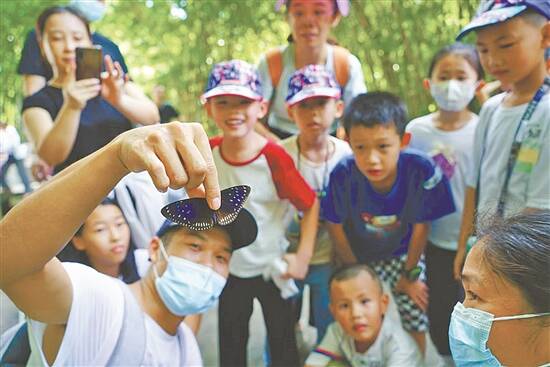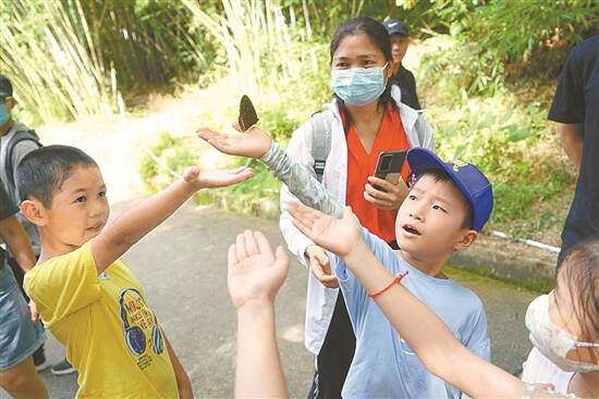 谭小姐对记者说,参加夏令营的过程中,孩子很喜欢,导师教学很丰富也很热情。在研学时,导师有安排学员抓蝴蝶的任务,小朋友都很积极参与。导师先派图卡给小朋友,让他们去找对应的蝴蝶,找到后,蝴蝶交由导师去捕捉,抓到后,就表示小朋友完成了任务,然后就给完成任务的小朋友一个贴纸作为奖励。另外,在爬山过程中,一边走一边会发现一些平时不常见的动物,如像枯草一样的蜘蛛等。小朋友们都会很高兴告诉导师自己的新发现,导师也会讲解该动物的名称、生活特性等。同时,研学也有科普的作用。比如小滩涂上有大型的黑色蝴蝶看上去在“休息”,其实在晒太阳、取暖,或在吸取沙石、水上面的盐分,以保持维持身体的需要。