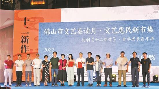 羊城晚报讯 记者刘颖颖、景瑾瑾摄影报道:日前,“佛山市文艺鉴读月·文艺惠民新市集——共创《十二新作》·青年成长嘉年华”开幕式在佛山创意产业园举办。记者从现场获悉,本次活动将从7月23日持续至8月23日,其间将举办沉浸式游园交互文艺展、专题艺术展览、精品文创市集等版块的近50场次的文艺活动,将为广大市民带来传统与新潮、静态展示与动态互动相结合的免费文艺大餐。