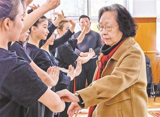 姚璇秋指导首届中国戏曲学院潮剧本科班的学生(资料图片)