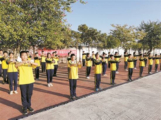 学生学习龙形拳成为汝湖镇校园一道风景 陈文儒供图