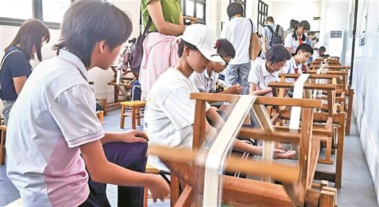 除了水上世界,室内拓展也成为炎炎夏日学生研学游最受欢迎的项目。位于西樵山脚下的广东蚕桑丝织文化技艺研学地负责人张良玉最近忙得不亦乐乎。从7月24日开始,当地许多中小学生纷纷来到基地,从认识桑蚕,参观纺织过程,到学习使用纺车,利用蚕蛹制作各种文创产品,许多学生玩得不亦乐乎。张良玉告诉记者,基地受欢迎,除了桑基鱼塘文化辐射力大,研学内容不受场地限制,与大多在室内也有关系。“无论是纺纱织布,还是参观织布机等,行程大多都在室内,学生在研学的同时,也能比较好地预防中暑。”