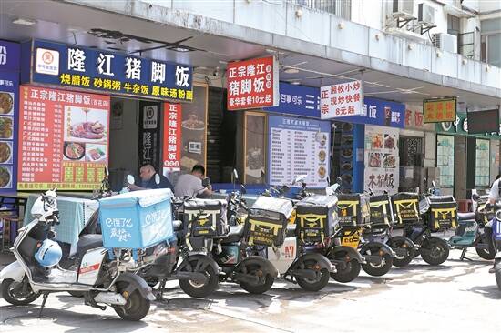 外卖小哥的电动车停在店门口,一有出货马上送走