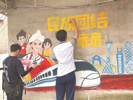 广州铁职院学生在乡村进行墙绘