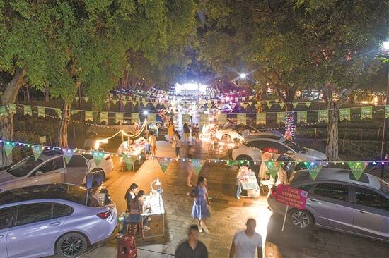 “车尾箱市集”作为一种新鲜的经营业态,在佛山多个商圈兴起,除了顺德容桂渔人码头,乐从世纪莲花海潮墟、大良凤城食都夜市、龙江大坝灯光夜市等也纷纷设置了“车尾厢市集”,成为人们钟爱的打卡点。