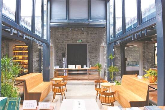 这其中,“一锥书屋”是最受年轻人喜爱的打卡点。建筑本身为仿古设计,外部是和故居、村落一脉相承的青砖镬耳屋,但设计师打破了原来空间的闭塞感,墙体两侧装上宽大的玻璃窗,在天井部分也一改传统使用玻璃材料,人就像在玻璃屋里,抬头望向窗外便是郁郁葱葱一片。