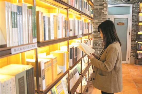 市民黄小姐与男友趁工作日人少到书屋打卡,“康园之前一直听过,但我一直没过来玩。前几天在网上搜到这个网红书店,一下就被这个精致的设计吸引了,就过来这边打卡,顺便游览一下。园区很安静,很适合来放松。”