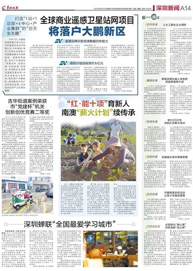 8月4日,大鹏新区管理委员会与北京中科数遥信息技术有限公司、中科星联(深圳)信息科技有限公司签署战略合作框架协议。根据框架协议,合作三方将按照“优势互补、资源共享、共同发展”的理念,共同推进全球商业遥感卫星站网(全球总部基地与深圳站)项目落户大鹏新区,加快推动未来产业在新区发展,支持空天技术产业在新区集聚。