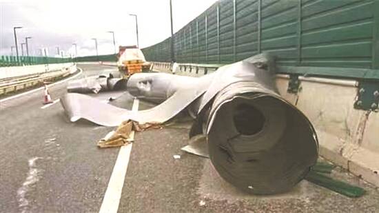 据了解,莫某是佛山某汽车运输有限公司的专职司机,当天一早就从佛山出发,载着三捆钢卷前往金湾。来到金台互通时,他称当时拐弯车速较快,导致车上的绑带和帆布都被损坏,钢卷也被甩下车,因此砸坏护栏。还好事故发生时,匝道上没有车经过,没有造成人员受伤。