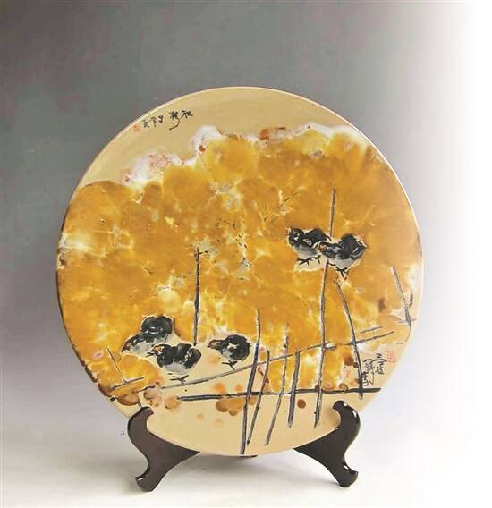 “在漫长的石湾陶塑史中,诸多名家都在书画艺术中汲取养分,并将其融入陶艺创作。我近几年也尝试将国画大写意手法融合石湾釉,在陶碟等载体上创作。”吴植华表示。