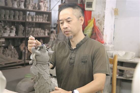 “用寻常的材料,陶泥、釉色等,做出承载着美好寓意的陶瓷艺术品,是一件很美妙的事情。”对广东省工艺美术大师、广东省陶瓷艺术大师周永锵而言,他用心守护着陶塑手艺,这门手艺也深度滋养着他的人生。从艺三十多年来,周永锵在作品题材上涉足甚广,尤其擅长人物塑造,其黄飞鸿及醒狮题材作品更是广受好评。