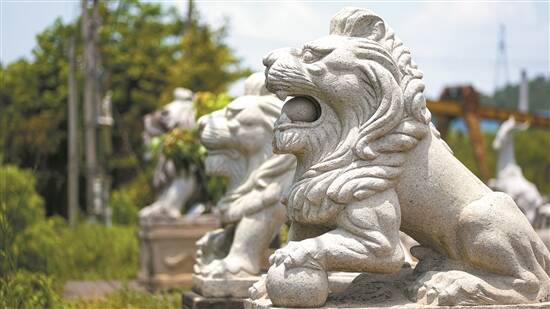 “五华石雕的特色是‘近看粗犷大气、远看极富神韵’。”省级非遗项目“五华石雕”的县级代表性传承人陈春泉说,水寨大桥桥头安放着的两尊明代石雕狮子便是五华石雕的代表杰作之一。石狮不仅威风凛凛,口中还含着一颗滚圆的石珠,只要用手轻轻拨动,石珠就会滚动;但无论怎么扒拉,石珠就是拿不出来。“由于五华石雕的原材料以花岗岩为主,传统工艺手法也比较粗犷,非常适合创作大型作品。”陈春泉说,大型石雕作品往往由多块石材组成,需要多人合力。石匠师傅们会根据作品草案进行明确的分工,并按照设计方案精准雕刻完成,最后组成一个完整的作品。广州越秀山五羊石雕便用了130多块花岗岩,整个创作过程体现了五华石匠出色的统筹能力与高超的技艺。“这些作品经得起岁月的洗礼。”陈春泉说。