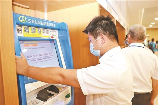 市民通过自助服务终端办理社保业务