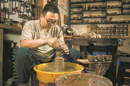 入窑一色,出窑万彩。走进南风古灶公仔街“金陶源”工作室,游客很快会被这里清新润目、釉色独具一格的陶艺品所吸引。
