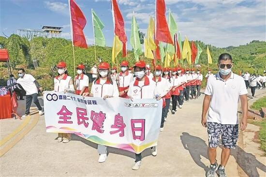怀集县同一天在华辰玫瑰园举行“全民健身日”健身徒步活动,徒步活动全程约2公里,在乡镇(街道)党(工)委、县直各党委代表活动现场,武术、广场舞、健身歌舞等节目轮番上阵。社会群众约500人参加活动。全民健身日当天,怀集县体育中心各场馆免费开放。