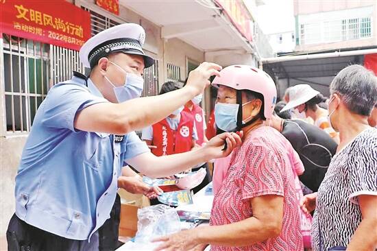 珠海交警向社区居民免费派发安全头盔
