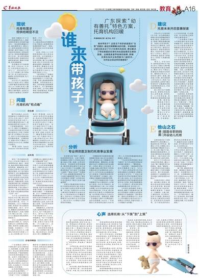 席小莉告诉羊城晚报记者,想要托育机构进入良性发展,师资队伍、人才培养标准、机构建设标准就要越来越成熟,国家监管和给予的专业支持越来越成体系,行业的专业性会更强:“国家应该增加0~3岁公益性的投入。有了国家托底,专业建设、人才培养质量、行业稳定性、社会机构之间的关联会做得更好。”