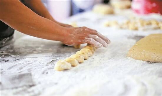 大朗本地人将这一分外钟情的月饼,亲切地称为“牛屎月饼”。年已五旬的店老板叶镇洪说,月饼虽然名字不美,但味道甚好,剥开层层油纸,一口下去,溢出的馅料瞬间侵占味蕾,口感甜而不腻。叶镇洪告诉记者,他制作月饼的手艺是祖传的,从爷爷传到父亲,父亲又教会他,已经100多年了,他们会把传统月饼制作工艺继续发扬下去。