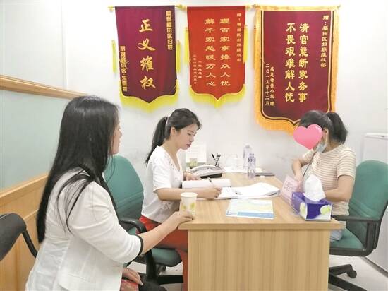 福田区婚调委着力打通婚调委和妇女维权站的对接通道,以妇女维权站、各街道和社区为“门诊”。灵活引导群众选择值班室调解、电话调解、婚调室调解、社区调解等多种调解形式。对于需要深入调处的婚姻家事个案,第一时间转介到婚调委评估跟进,确保各类矛盾纠纷能够及时发现,有效化解。