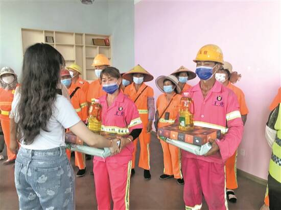 为更好地发动全社会关心关爱环卫工人,让他们切实感受到职业自豪和社会温暖,发动市民群众理解尊重环卫工人的劳动成果,马田街道针对环卫行业群体特别开展系列慰问活动。在春节、端午、中秋节等重大节日节点联合光明区城管、工会部门开展走访慰问活动,为一线环卫工作人员送上节日祝福。在夏季高温期间,联合4家环卫企业开展了“夏日送清凉”活动,为环卫工人们送上凉茶、十滴水、藿香正气水等防暑药品以及凉粉、西米露、绿豆汤等解暑凉汤。