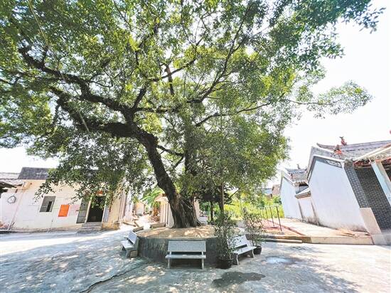 记者留意到,石屋寮古村落保护开发项目重点提到了古树名木的保护。据石屋寮村有关负责人介绍,村里有成千上万棵百年古树分布其中,种类主要以榕树、芒果树、荔枝树、龙眼树等为主,大多都已经过挂牌登记,通过树干上的牌子,树龄、种类等信息一目了然。茂密的古树枝叶为古村落增添了韵味。