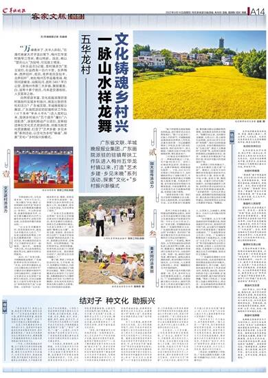 有了文化载体,就要有鲜活的文化内容。在工作队积极争取下,2021年成功申请把龙村镇列入省文明办指导的省市县三级文艺工作者挂点联系新时代文明实践中心工作的试点镇。邀请女高音歌唱家李素华到龙村硝芳中学开展校园声乐培训,市、县书法家开展“翰墨龙村”书法作品展暨书法培训;联系省文联书画家和省摄影家协会到龙村镇开展乡村振兴主题书画创作和摄影采风创作活动;举办“龙村文化公益课堂”——广东曲艺名家进校园活动、《羊城晚报》名师团走进硝芳中学新闻创作知识讲座;联系浙江大学支教小分队、客家大学生支教团队、广东工程职业技术学院3支队伍在龙村镇开展乡村公益支教暨暑期社会实践活动,提升乡村儿童文化素养,丰富学生校园文化生活。